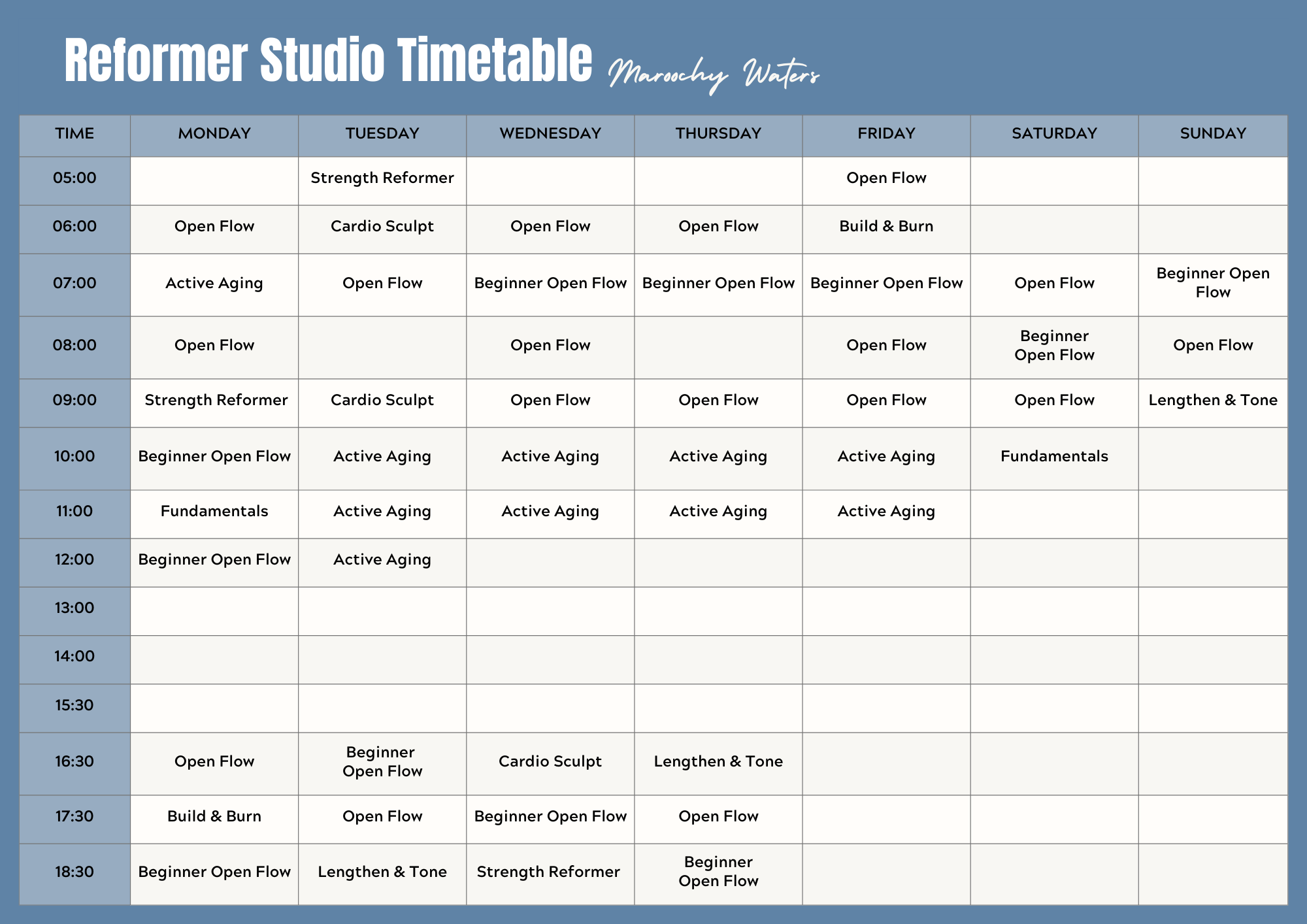 Strength Reformer classes that focus on progressive overload at both the Maroochy Waters & Buderim Reformer studio